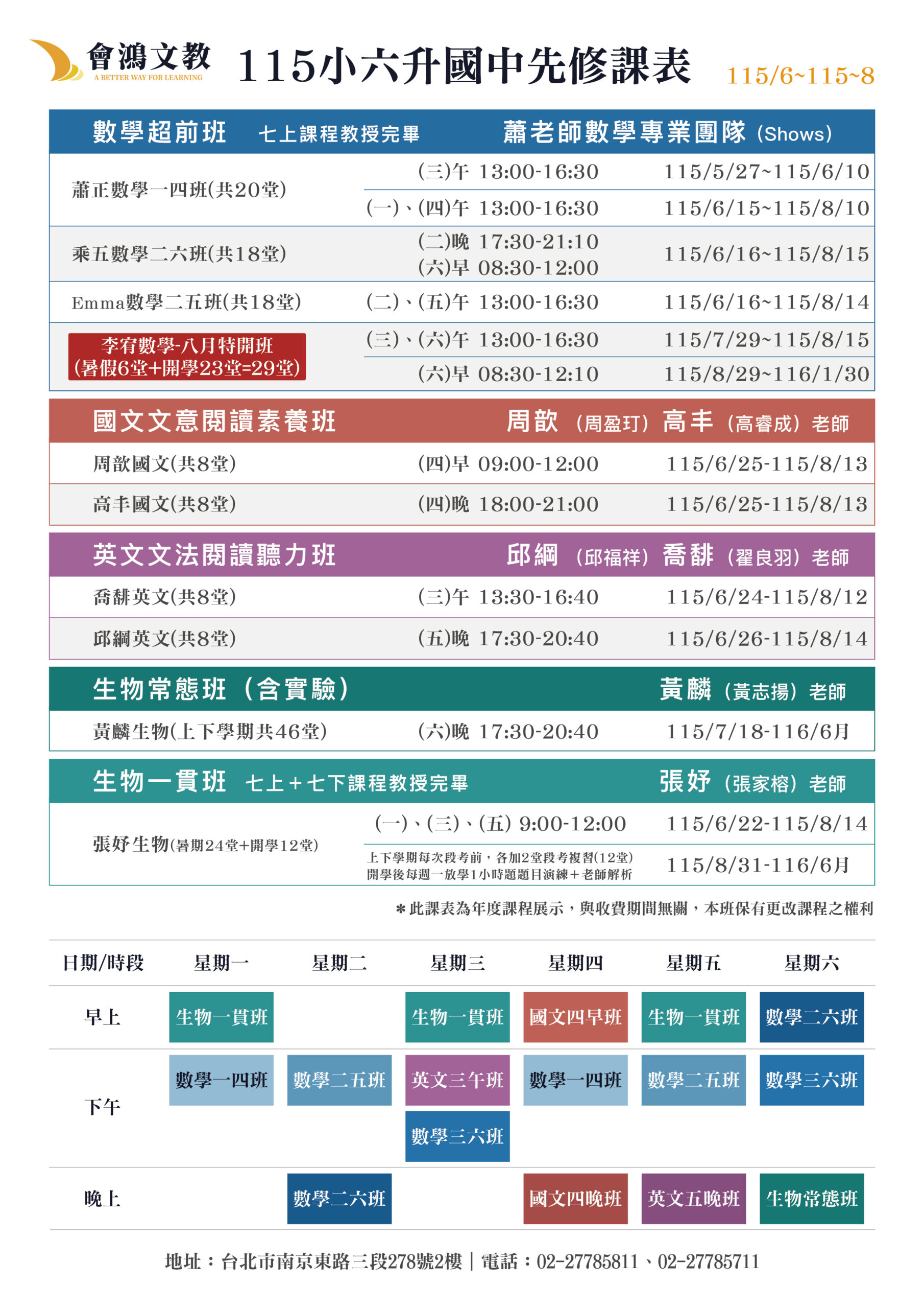 115小六升國中 先修班/超修班/資優班六升七先修, 國中課程 / 2026 年 2 月 3 日 🔍點我諮詢正式課程 歷屆學生表現傑出 家長口碑熱情推薦國中入學超前佈署 把握時機提升實力 小六升國七 國英數自先修班/超修班/資優班 2026 五月底開課正式開班招生未滿班 班系 所剩名額不多 王牌師資專業授課 行政輔導用心照顧教學輔導嚴謹精選 行政管理制度嚴密