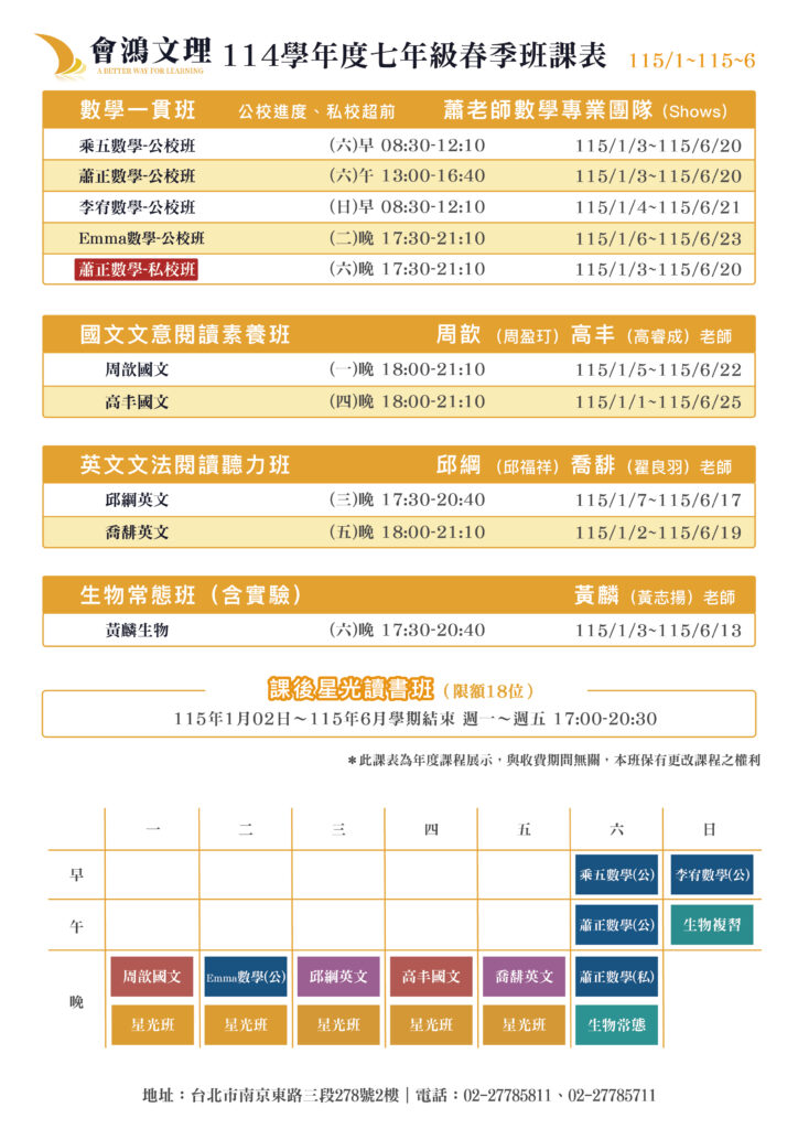 114升國七 先修班/超修班/資優班 2025 年 9 月 24 日 歷屆學生表現傑出 家長口碑熱情推薦國中入學超前佈署 把握時機提升實力王牌師資專業授課 行政輔導用心照顧教學輔導 … 114升國七 先修班/超修班/資優班 閱讀全文 »